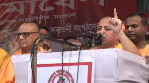চিন্ময় কৃষ্ণ দাস বলেন, সহনশীলতা লুপ্ত হওয়ায় বারবার ক্ষমতার পটপরিবর্তন হলেও দেশে স্থিতিশীলতা আসছে না। এতে সম্মানবোধ হারিয়ে যাচ্ছে, শিক্ষককে পদত্যাগ করানো হচ্ছে। শুধু সংখ্যালঘু পরিচয়ে ৯৩ জনকে পুলিশের চাকরি থেকে অব্যাহতি দেওয়া হয়েছে। ভেটেরিনারি ও চট্টগ্রাম বিশ্ববিদ্যালয়ে হিন্দুদের চিহ্নিত করা হচ্ছে। মাঝখানে কিছুদিন এমন অপকর্ম থেমে গিয়েছিল। এখন মাথাচাড়া দিয়ে উঠছে। আমরা আর নীরব থাকবো না।