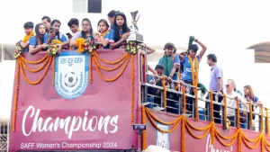 দক্ষিণ এশিয়ার চ্যাম্পিয়ন মেয়েদের নিয়ে আনন্দে মাতোয়ারা দেশের ফুটবল। ঢাকা পা রেখে ছাদখোলা বাসে শোভাযাত্রা করে বাংলাদেশ ফুটবল ফেডারেশনে এসে হাজির হন সাবিনা-তহুরারা। প্রায় তিনঘণ্টার শোভাযাত্রা শেষে ফেডারেশনে এসে সাবিনারা পেলেন আরেক সুখবর। ক্রীড়া মন্ত্রণালয়ের পক্ষ থেকে সাফজয়ীদের এক কোটি টাকা দেয়া হয়েছে।