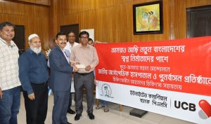 সম্প্রতি ইউসিবির অতিরিক্ত ব্যবস্থাপনা পরিচালক এটিএম তাহমিদুজ্জামানের নেতৃত্বে একটি টিম জাতীয় অর্থোপেডিক হাসপাতাল ও পুনর্বাসন প্রতিষ্ঠান (নিটোর) পরিচালক ও অর্থোপেডিক্স সার্জারির অধ্যাপক ডা. কাজী শামীম উজজামানের হাতে ২৫ লাখ টাকার চেক তুলে দেন।